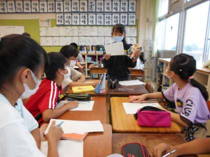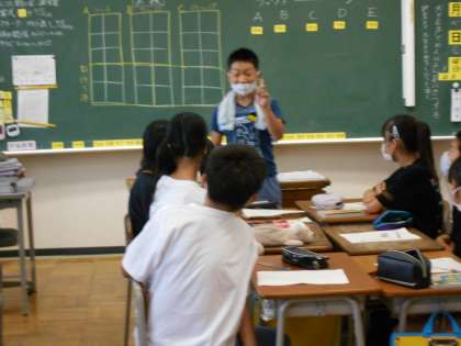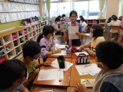 夏休み前最後の日に、夏休みに是非読んで欲しい本を紹介し合う「ブックトーク」を行いました。それぞれ「自然」や「学習」などのテーマを設け、実際に本の一部を紹介したり、おすすめのページを見せたりしながら本の魅力を伝え合いました。