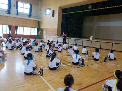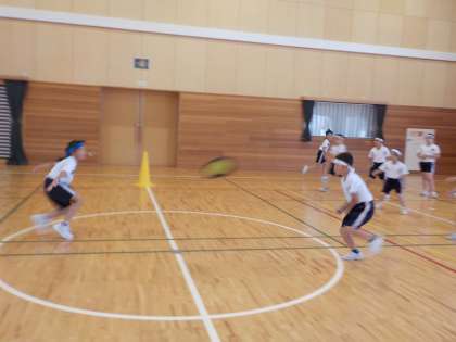 今週、学年集会「ドッジビー大会」を開催しました。今年の色団のメンバーがはじめて顔を合わせ、団対抗で戦いました。