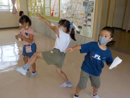生活科の学習では、紙飛行機を作って遊んでいます。