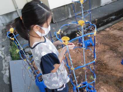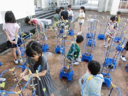 「先生、こんなにたくさんとれたよ」「来年の一年生に渡そうね」とうれしそうにお世話を続けています。