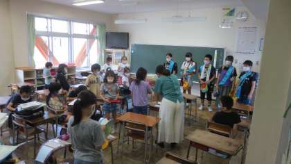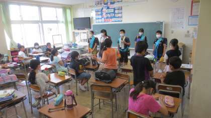 運営委員会の子供たちは毎朝挨拶運動に取り組んでいます。さわやかな挨拶を広げるために各教室を訪問し、礼儀正しく挨拶をしています。