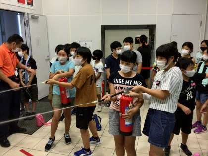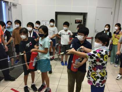 四季防災館で災害について学習してきました。消火器体験では、火の根元を狙うことを教えていただきました。