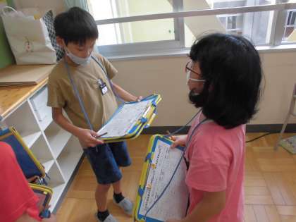 友達の好きなことを知り、最後には友達クイズを行う予定です。クイズに正解するために、友達のことをもっと知ろうと進んでインタビューしていました。また、ALTのクリス先生とも英語で話すことを楽しみました。