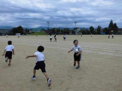 係の子供が企画した遊びをしました。グラウンドで休み時間思いっきり体を動かすことができてうれしそうな子供たちです。