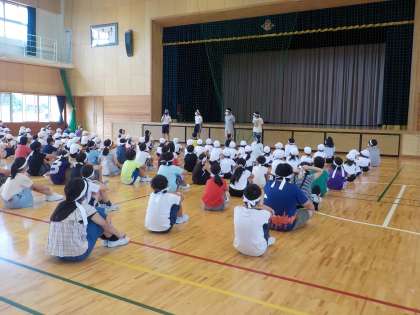 2年生の子供たちは、団長さんたちのかっこいい姿をじっと見つめていました。