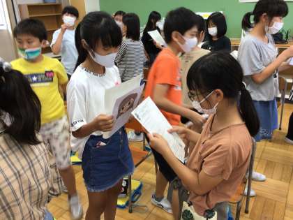 外国語科では、自分の身近な人の職業や特技を英語で紹介し合いました。