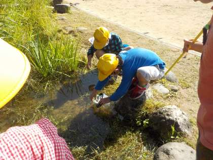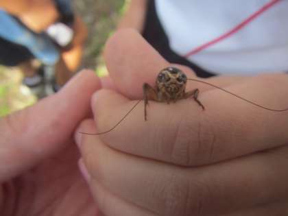 コオロギ、トンボ、キリギリス…見つけるたびに大喜び。「セミの抜け殻があるのに、セミはいないね」と季節の変化を感じる姿も見られます。