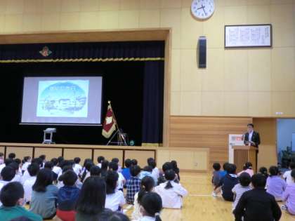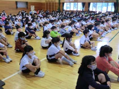 10月10日に新庄小学校は、創校148周年を迎えます。今日は、体育館で創校記念集会を行いました。新庄小学校の歴史や校舎の様子などを映したスライドを見たり、校長先生から当時の子供たちはどのような学校生活を過ごしていたのか聞いたりして、今まで以上に新庄小学校に対する愛着を深める子供たちでした。