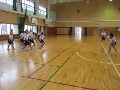 上段:家庭科では、ミシンの使い方を学んでいます。