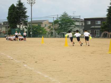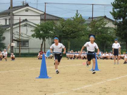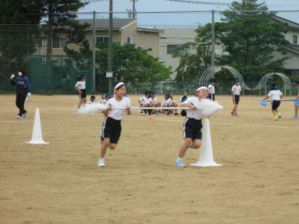 運動会の、団体競技「巻き起こせ!パワーUP↑ハリケーン」の練習をしています。