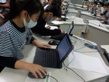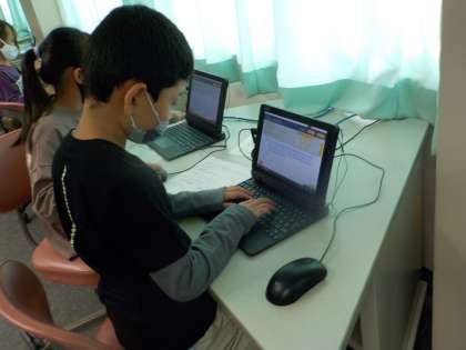 総合では「見つけよう 伝えよう 歴史ある新庄のじまん」の学習で、新庄校区にある建物を調べます。今日は、国語科で学んだローマ字で、キーボードで打ち込む練習をしました。打ち込む様子は真剣で画面に集中している様子ですが、最後まで打ち込み終わり、変換までできたときには、子どもたちの笑顔があふれていました。