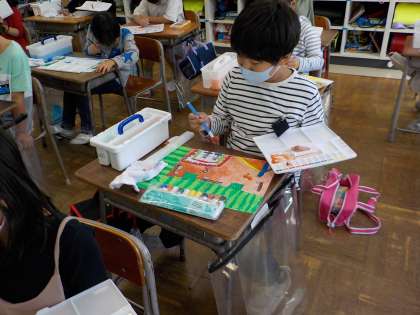 水彩絵の具の経験を重ねてきたことで、水の量を工夫して自分の思い通りの色を表すことができるようになってきており、楽しそうです。