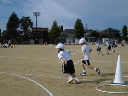 団体競技「きらり☆なかよしのわ」では、なかよしの輪を協力してつなぐことができました。一生懸命練習してきたダンスも、元気に踊ることができました。