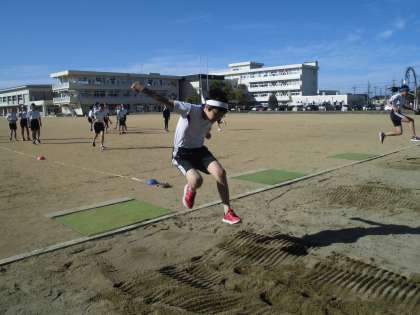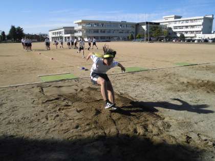 今日の体育では、走り幅跳びに挑戦しました。タイミングよく踏み切ることができるように何回も練習しました。