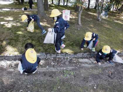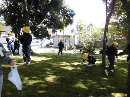 グループに分かれて、公園内を回りました。友達と一緒に声を掛け合ったり、集めたい秋の実をみんなで探したりする姿が見られました。
