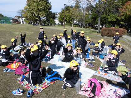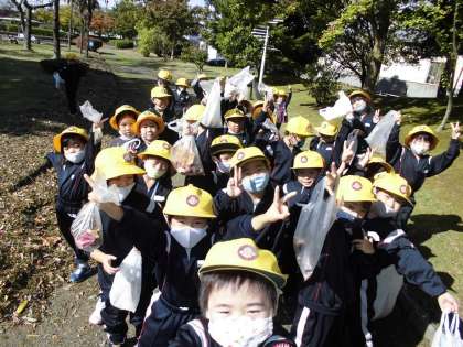 休憩中には友達と見付けた秋を紹介し合っていました。たくさんの秋に触れ合うことができて、うれしそうな子供たちです。