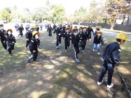 最後にみんなで「だるまさんの一日」をして遊びました。いつもと違う広い公園で体を動かすことができて、楽しむことができました。