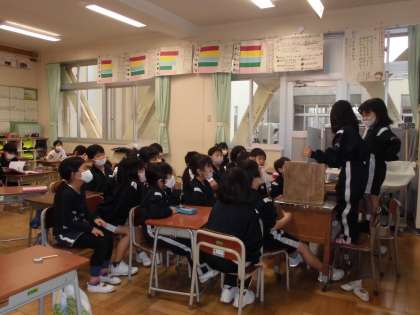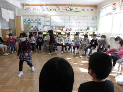 朝、読み聞かせをしている子供の様子です。気持ちを込めて読んだり、ふりを付けたりして、楽しくなるように工夫しています。