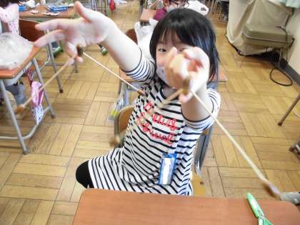 生活科の学習で、秋のおもちゃを作っています。先日たくさん集めてきたドングリや松ぼっくりをどのような遊びで使うか考えて、安全に気をつけながら作っています。