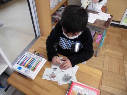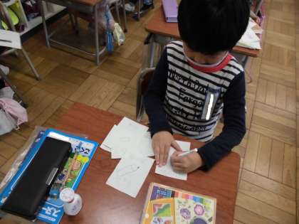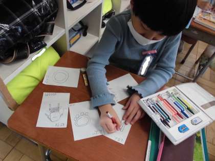 国語科で「ものの名まえ」の学習をしています。まとめて付けた名前や、一つ一つの名前の違いを学習した後、ものの名前を集めて、おみせやさんごっこをする準備をしています。