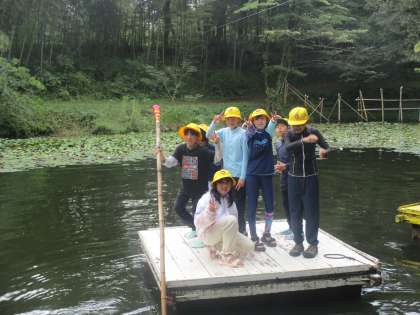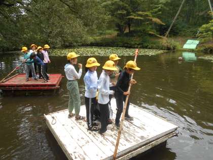 10月7日(月)4年生宿泊学習 池遊び いかだ