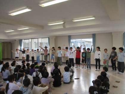 学習発表会に向けて、グループに分かれて練習を進めている3年生。今日は、全体で集まって初めて発表をしました。仲間が頑張る姿を見て、「すごいと思った」「発表を見ることができて嬉しかった」と感想を述べていました。