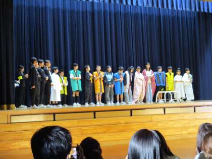 今日は、学習発表会本番でした。今日までに子供たちは互いにアイディアを出し合い、シナリオや衣装、小道具等を工夫し、歴史劇を作り上げてきました。本番は、これまでの練習の成果を発揮し、素晴らしい発表となりました。