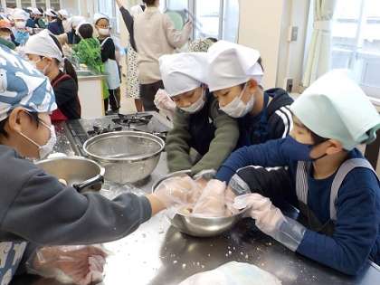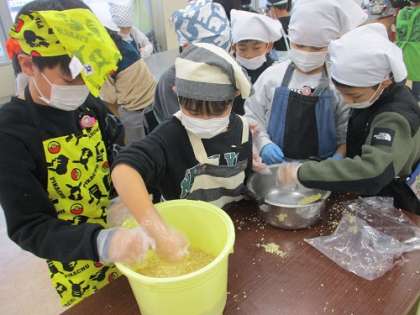 今日の総合的な学習の時間では、大豆を味噌に変身させようと頑張りました。自分で味噌の作り方を調べ、各学級で協力して取り組みました。