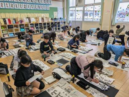 前回自分が書いた書き初めをよく見て、今回の練習で気を付けたいポイントを1人1人が確認してから書き初めの練習をしました。着実に上達している子供たち。本番が楽しみです。