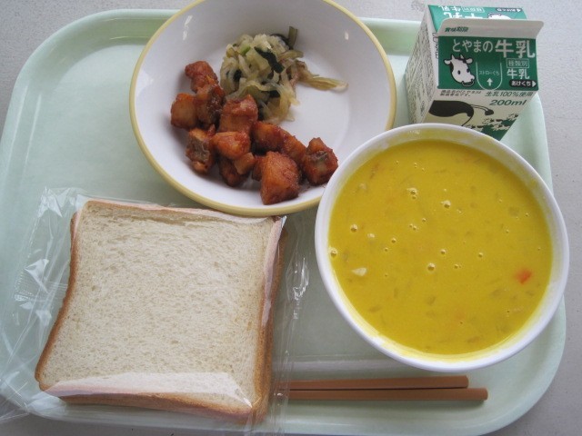 給食では、ウスターソース、ケチャップ、砂糖を合わせてソースを作り、
