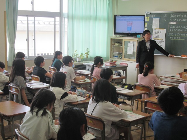 5年3組の学習参観の様子です。算数科『直方体や立方体の体積』の学習を行っています。
