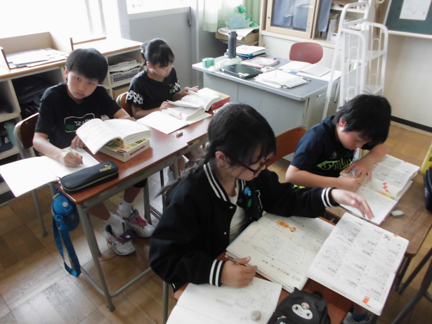 国語の学習で、同じ部分をもち同じ読みをする漢字や、同じ部首をもつ意味合いが似ている漢字について調べ、クラス全体で見付けた漢字を紹介し合いました。