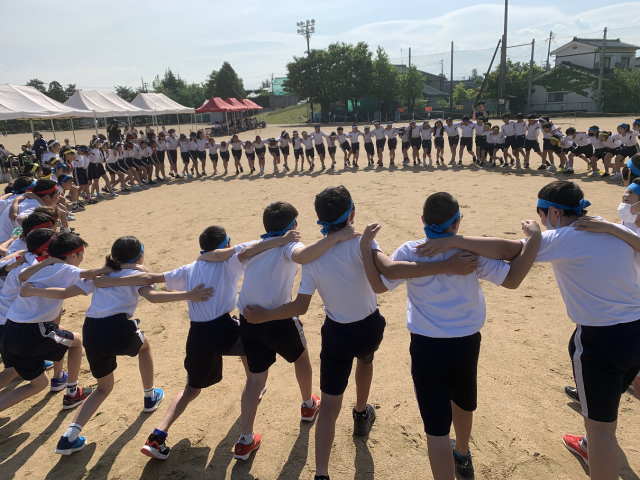 小学校生活最後の運動会が始まる前に、学年全体で円陣を組んで気合いを入れ、やる気十分な様子でした。観に来ていただいた保護者の皆様、ありがとうございました。