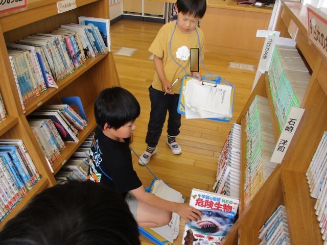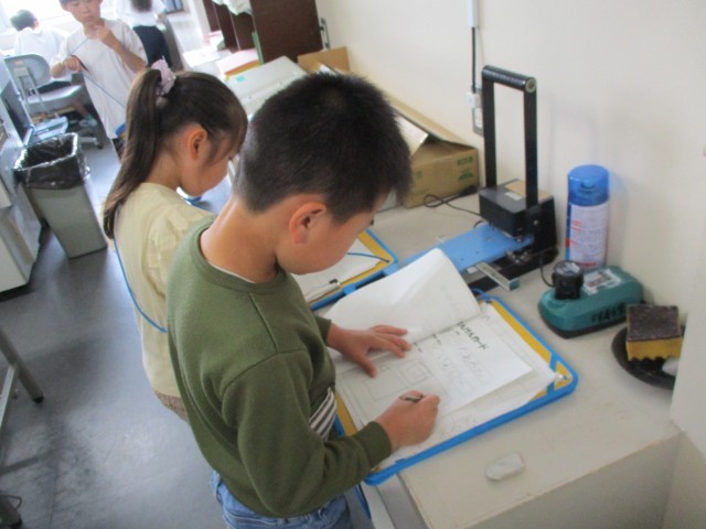 生活科の時間に、グループに分かれて学校を探検しました。この日のために、子供たちは探検の計画を立て、地図で場所を確認してきました。いろいろな道具を見付けたり、先生方に話を聞いたりして、知らなかったことをたくさん学びました。