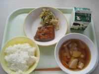 今日の給食は社会科に関する献立です。・ごはん ・牛乳・すりみのお好みソースかけ...