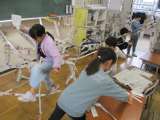 図画工作科では、細長い新聞紙やチラシをつないだりつるしたりしました。様々なつな...