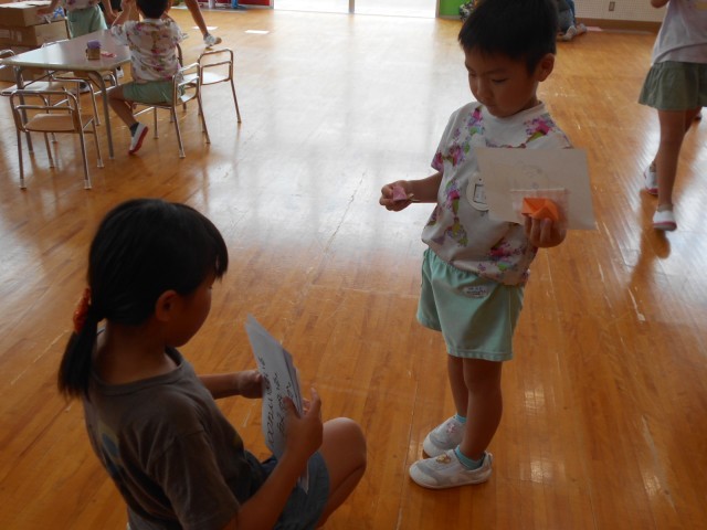 総合的な学習の時間で、藤ノ木こども園の年長の皆さんと交流活動をしました。今日まで「年長の皆さんに楽しんでもらいたい」と様々な活動を考え、準備しました。5年生の子供たちは、年長の皆さんと楽しく関わることができ、嬉しそうでした。活動を終えると、「今度はいつあるの?」「今度はもっとこうしたい。」と次回に向けての意欲を高めました。
