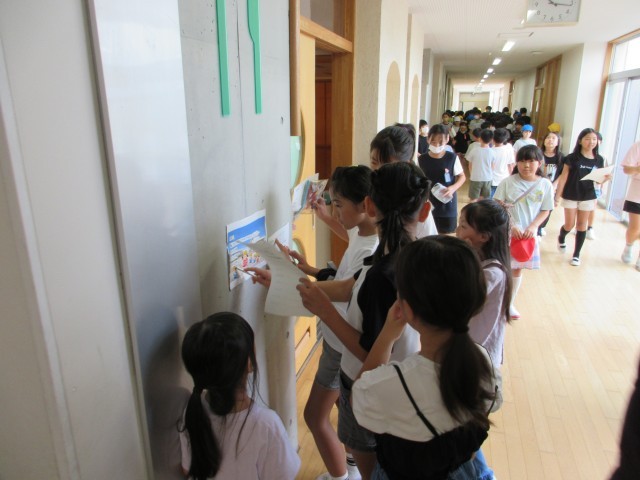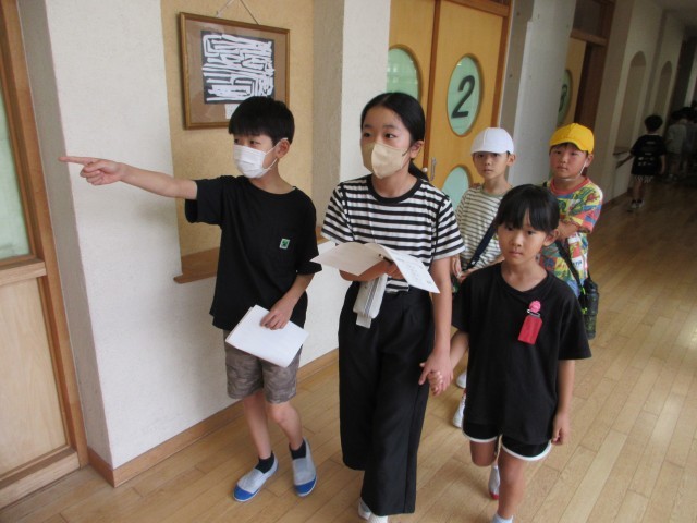 先日、大休憩に運営委員会の企画で、他学年の仲間と一緒にクイズを解くという活動を行いました。「どこに行く?」と優しく声をかける子や「何番が答えだと思う?」と聞いて問題を答えさせてあげる子など、思いやりの気持ちをもって接する素敵な姿がたくさん見られました!来週の就学時健康診断では、5年生の活躍が必要不可欠です。年長さんに対してどんな姿を見せてくれるか楽しみにしています!