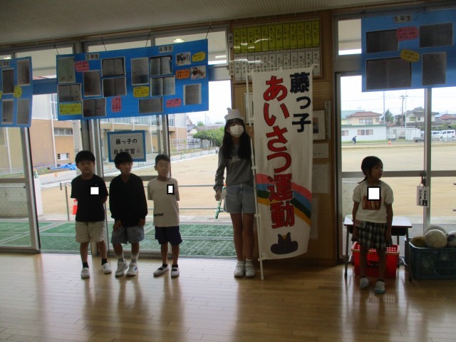笑顔委員会と一緒に挨拶運動に取り組む子供の姿が見られました。気持ちのよい挨拶を全校に広めようと、頑張っています。