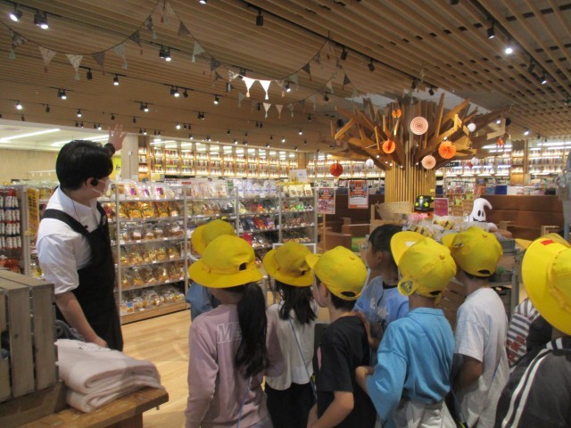 TSUTAYA(文苑堂)に行きました。本だけでなく、いろいろな雑貨や服等が売られているところを店員さんに案内していただきました。子供たちは、「本の並べ方には、どんな工夫がありますか」「どんな気持ちでお客さんに接していますか」等と店員さんにインタビューしました。詳しく教えていただいたことを真剣にメモし、友達に早く伝えたいと意気込んでいました。