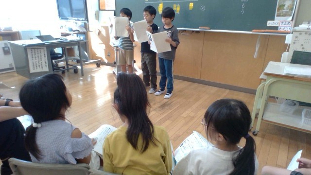 国語科の時間に学習している「お手紙」の音読発表会をしました。がまくんとかえるくんの気持ちを考えて、読み深めてきました。今日は、がまくんとかえるくんの気持ちを音読で表現しました。