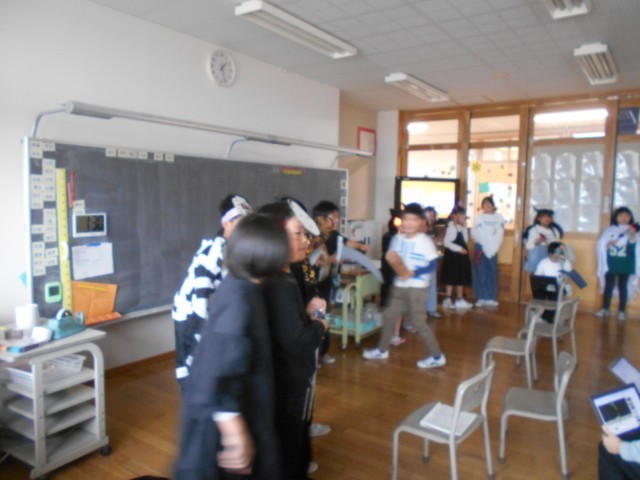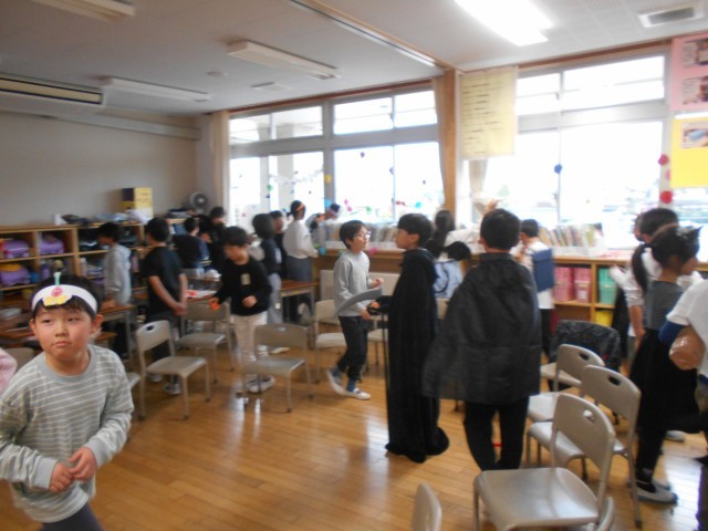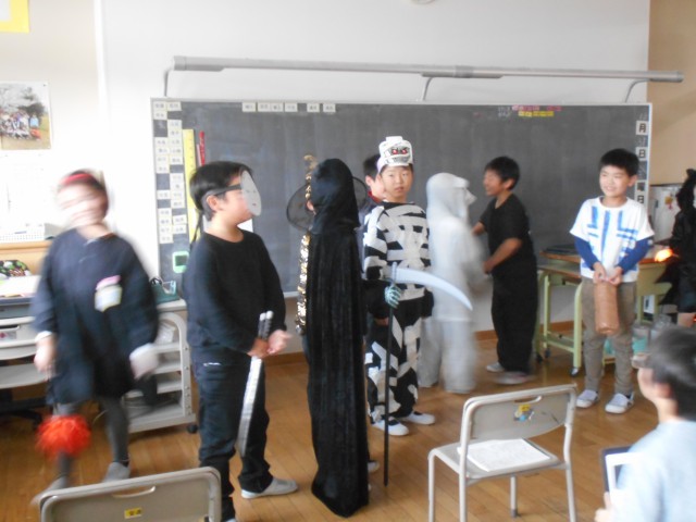今日はクラスのみんなで準備した、ハロウィン集会の日でした。
