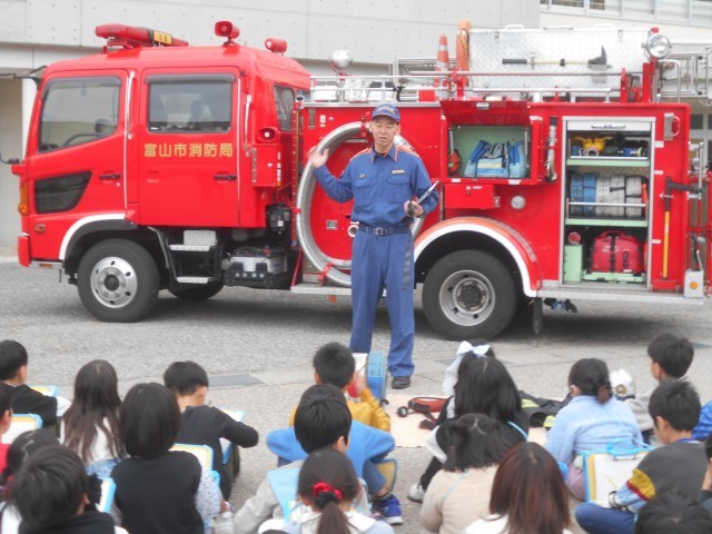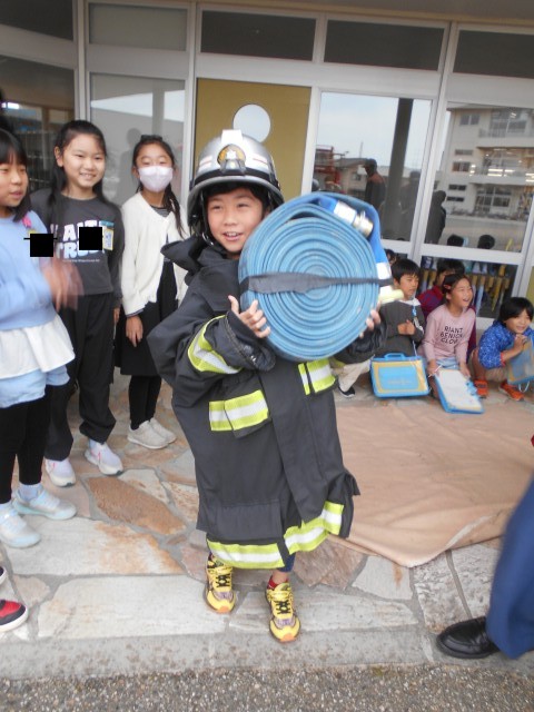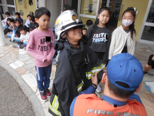 消防車の説明を受けたり、防火服や空気ボンベの体験をさせてもらったりと充実した時間を過ごすことができました。