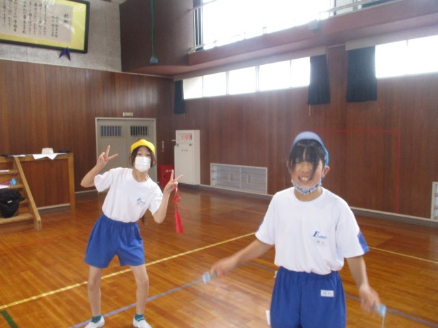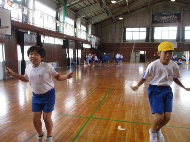 立ち幅跳びや二重跳び等を行い、クラスで平均を出し、学年チャンピオンクラスを決めます。