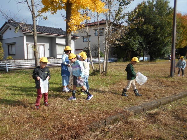 藤木公園へ行きました。公園ではルールを守ってなかよく遊んだり、どんぐりや松ぼっくり等の秋見付けをしたりしました。