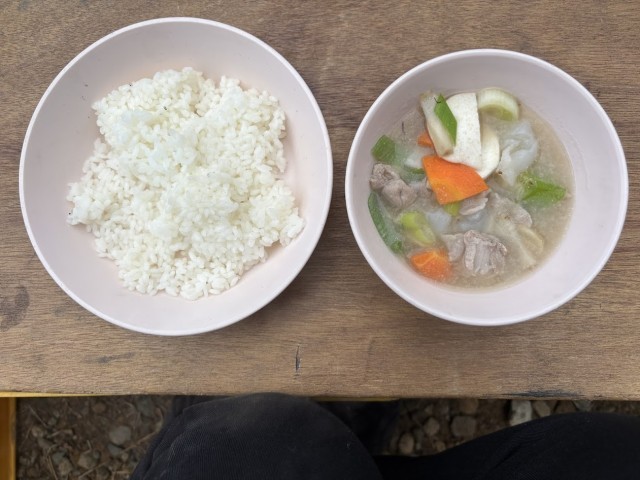 野外炊飯で一生懸命調理している様子です。