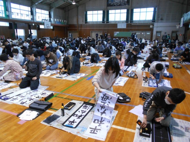1月8日の書き初め大会では、集中して心を込めながら、一文字、一文字丁寧に書きました。3学期がんばろうと気持ちを高めることができました。