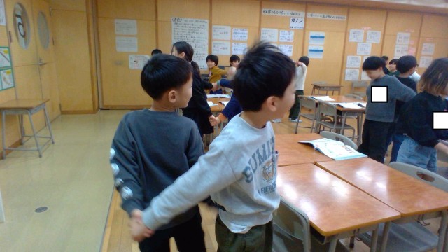 音楽科「日本のうたでつながろう」の学習では、「ずいずいずっころばし」や「なべなべそこぬけ」等を歌いながら遊びました。日本のわらべうたに親しみました。