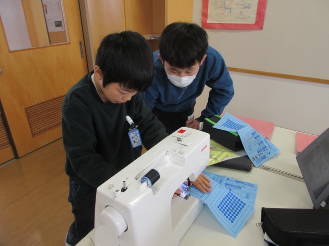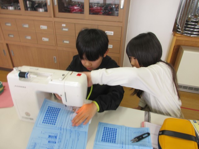 家庭科の学習では、ミシン縫いに挑戦しています。ほとんどの子が初めてミシンを使うため、先生の話をよく聞き、友達と協力したり、地域のボランティアの方に助けてもらったりしながら活動を進めました。協力していただいた保護者のみなさん、ありがとうございました!