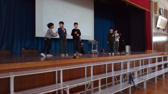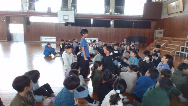 3年生になって9回目の学年集会は、3組の皆さんが企画・運営をしてくれました。なわとびリレーや先生クイズを行い、とても盛り上がりました。学年みんなで楽しい時間を過ごすことができました。